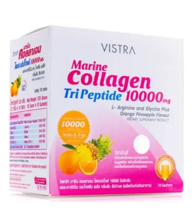 VISTRA Dietary Supplement Marine Collagen TriPeptide 1000 mg 10 Flavor Orange Pineapple 10 sachets