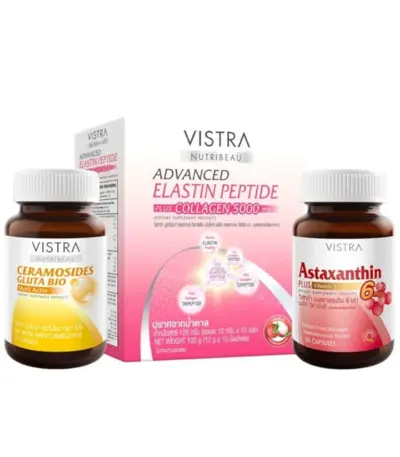 VISTRA Dietary Supplement Glass Skin Set Ceramosides 30 Tablets + elastin1 box 10 sachets + astaxanthin 30 Tablets x 3