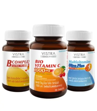 VISTRA Dietary Supplement Set Daily Boost BIO Vitamin C 30 Tablets + Multivitamins Ultra Plus 30 Tablets + B-complex Ultra Plus 30 Tablets x 3