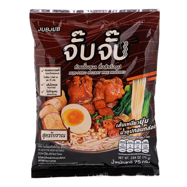 JUBJUB Non-fried instant rice noodles Chicken Stew With Herb Flavor Contains instant Rice noodles, Seasoning, Dehydrated chicken Mince, Chili paste and fried shallots