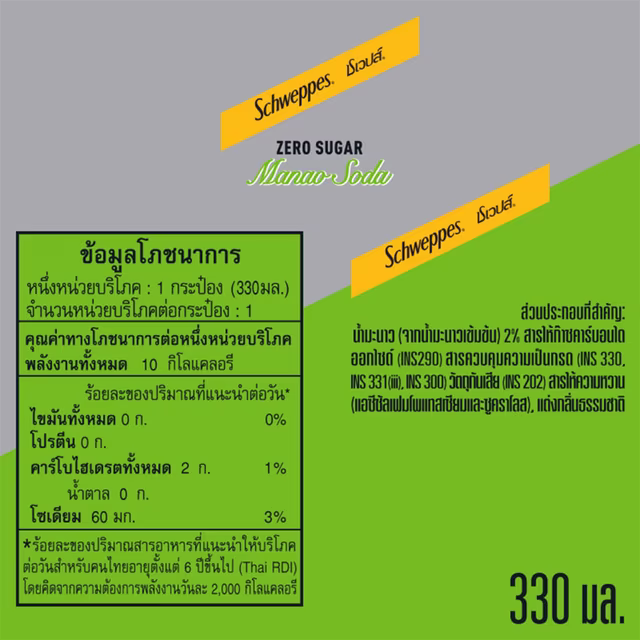 - SCHWEPPES Manao Soda Zero Sugar 330 ml x 6