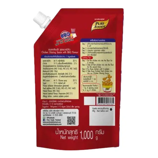 Chicken glazing sauce with BBQ flavor Purefoods 1000 g. It is a sauce for chicken of any fried meat such a squid etc.