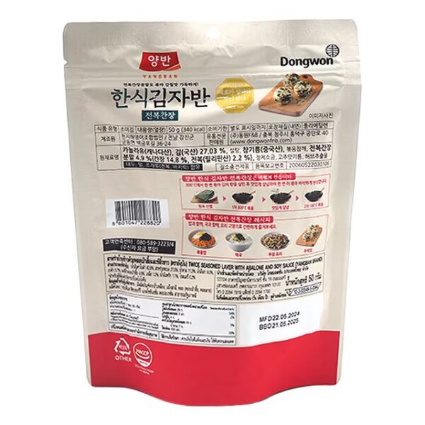 - YANGBAN Seasoned Seaweed Laver Abalone & Soy Sauce Flavor 50 g