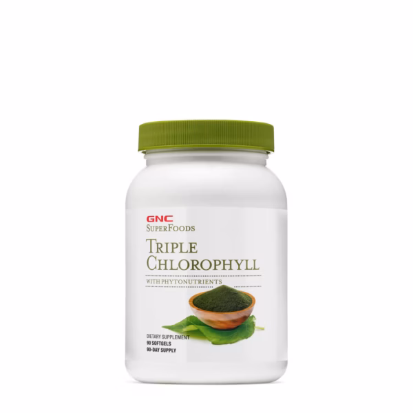 - GNC SUPERFOODS TRIPLE CHLOROPHYLL: Each soft gel provides 60mg of chlorophyll.