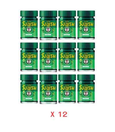 ยาหม่องสมุนไพรวังพรมสูตรเสลดพังพอน (สีเขียว) 50g (12 กล่อง)