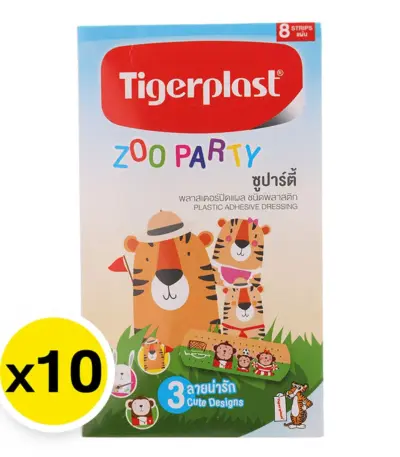 TIGERPLAST Plastic Adhesive Dressings Zoo Party 8 sheets x 10