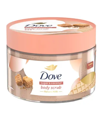 $15.83- Dove Sugar amp; Coconut Body Scrub Bodyscrub 1st Ice Cream Bodyscrub เนื้อครีมเนียนละเอียดดุจไอศกรีม อ่อนโยนต่อผิวด้วย Natural AHA ช่วยให้ผิวเนียนนุ่ม ชุ่มชื้น