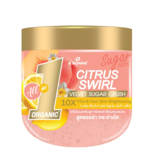 เอ บอนเน่ ซิตรัส สเวิร์ล เวลเว็ท ชูการ์ ครัช บอกลาผิวแหังกร้านด้วย สครับน้ำตาลพรีเมี่ยมผสมออยล์ นวัตกรรมใหม่ของ เอ บอนเน่ ที่มีน้ำตาล 100% ช่วยผลัดเซลล์ผิวเก่าและสิ่งสกปรกที่เกิดจากมลภาวะอย่างอ่อนโยน ทำให้ผิวเรียบเนียนนุ่ม ชุ่มชื่น อิ่มน้ำ ผสานคุณค่าจาก Organic Peach and Lemon Extract ช่วยให้ผิวโกลว์ อิ่มน้ำ พร้อมทั้ง 10x VITA-8 กับ 10x Niacinamide ที่ช่วยฟื้นฝูผิวอย่างอ่อนโยนและเผยผิวแลดูเรียบเนียน ชุ่มชื้น สุขภาพดี อย่างธรรมชาติ นำสครับขัดผิวลงบนผิวที่เปียก และนวดบนผิวเป็นวงกลม จากนั้น ล้างออกด้วยน้ำสะอาด คุณจะสัมผัสได้ถึงผิวที่เนียนนุ่ม กระจ่างใส แลดูมีออร่า