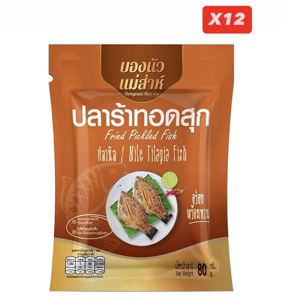 บองนัวแม่ส่าห์ ปลาร้าปลานิลทอดสุก 80g (แพค 12ซอง)