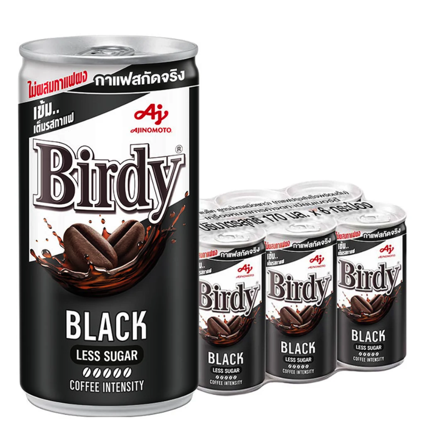 เบอร์ดี้ แบล็ค กาแฟปรุงสำเร็จพร้อมดื่ม สูตรน้ำตาลน้อย 170 มล. x 6