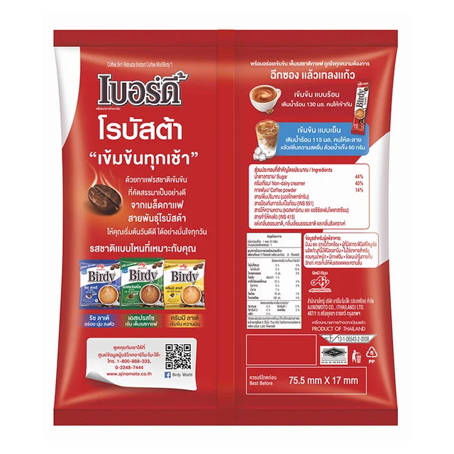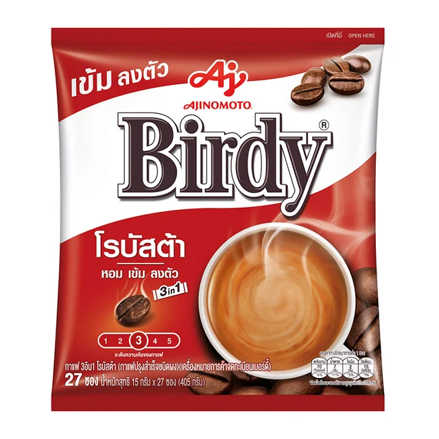 - เบอร์ดี้ กาแฟสำเร็จรูป 3in1 โรบัสต้า 15 กรัม x 27