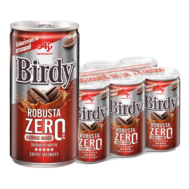 สัมผัสรสชาติเข้มข้น กลมกล่อมของ BIRDY Robusta Zero กาแฟรสชาติกลมกล่อม หอมกรุ่น ปราศจากน้ำตาล หอมกลิ่นโรบัสต้าเข้มข้น เหมาะสำหรับคอกาแฟที่ต้องการความสดชื่น เข้มข้น แต่ยังคงความหวานไว้ บรรจุในกระป๋องขนาด 170 มล. พกพาสะดวก เหมาะสำหรับเติมพลังระหว่างเดินทาง