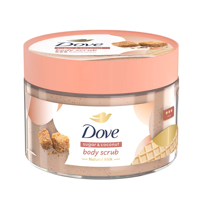 - Dove Sugar amp; Coconut Body Scrub Bodyscrub 1st Ice Cream Bodyscrub เนื้อครีมเนียนละเอียดดุจไอศกรีม อ่อนโยนต่อผิวด้วย Natural AHA ช่วยให้ผิวเนียนนุ่ม ชุ่มชื้น