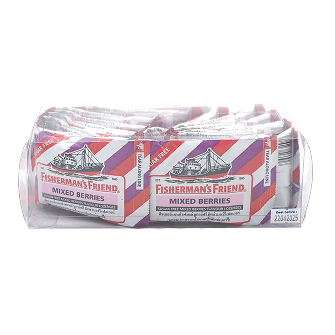 ชื่อ: FISHERMAN’S FRIEND ลูกอมรสเบอร์รี่รวม ปราศจากน้ำตาล 12 เม็ด ยี่ห้อ: FISHERMAN’S FRIEND- จำนวน: 12 เม็ด