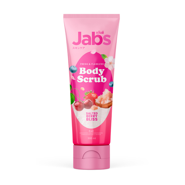 - Jabs Fresh & Flawless Body Scrub Salted Berry Bliss เปลี่ยนกิจวัตรการดูแลผิวของคุณด้วยสัมผัสอันแสนผ่อนคลายของเกลือหิมาลัยสีชมพูละเอียดที่ช่วยผลัดเซลล์ผิวอย่างอ่อนโยน เผยผิวที่เรียบเนียนและละเอียดยิ่งขึ้น