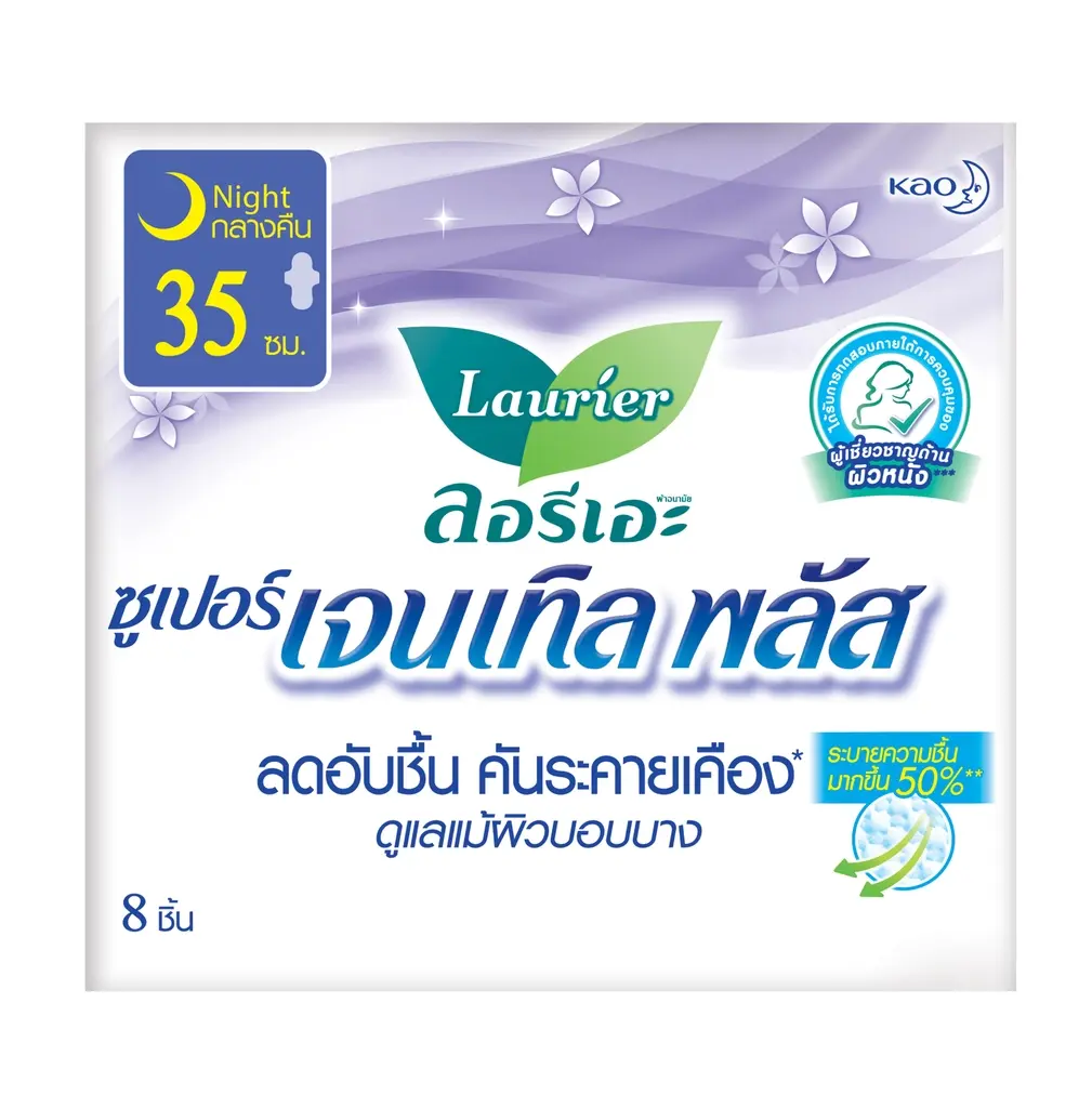 ลอรีเอะ ซุปเปอร์ เจนเทิล พลัส ไนท์วิง 35 ซม. ได้รับการพัฒนาเป็นพิเศษสำหรับ ผิวบอบบางแพ้ง่าย ให้ความสบายยาวนานและการปกป้องที่ปลอดภัยตลอดคืนสำหรับผู้ที่มามาก