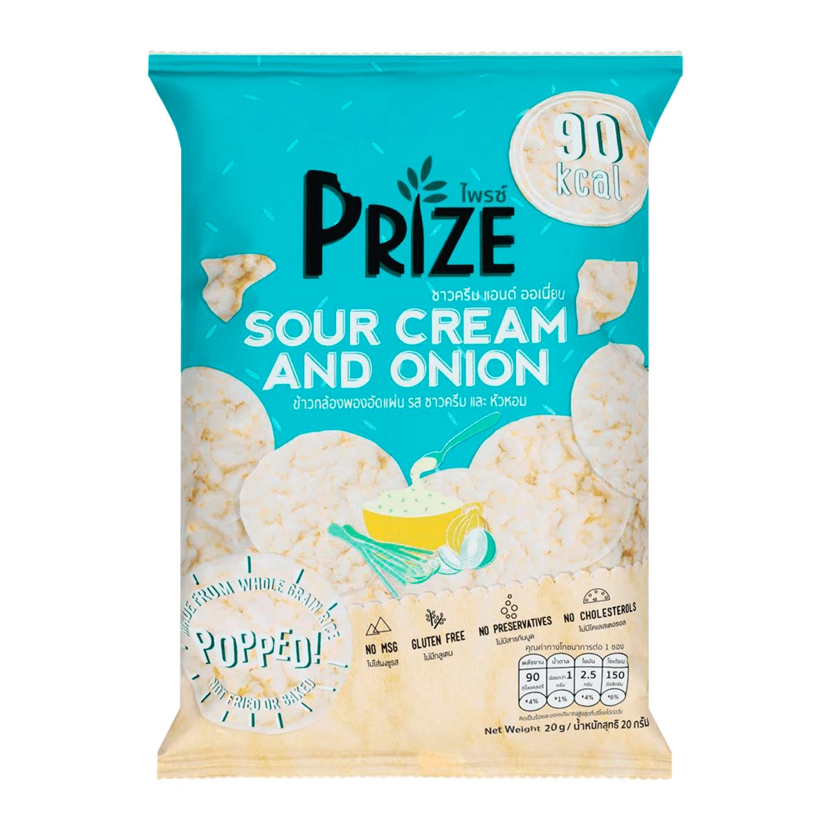 Puffed brown rice sheets, sour cream and onion flavor, 20 grams